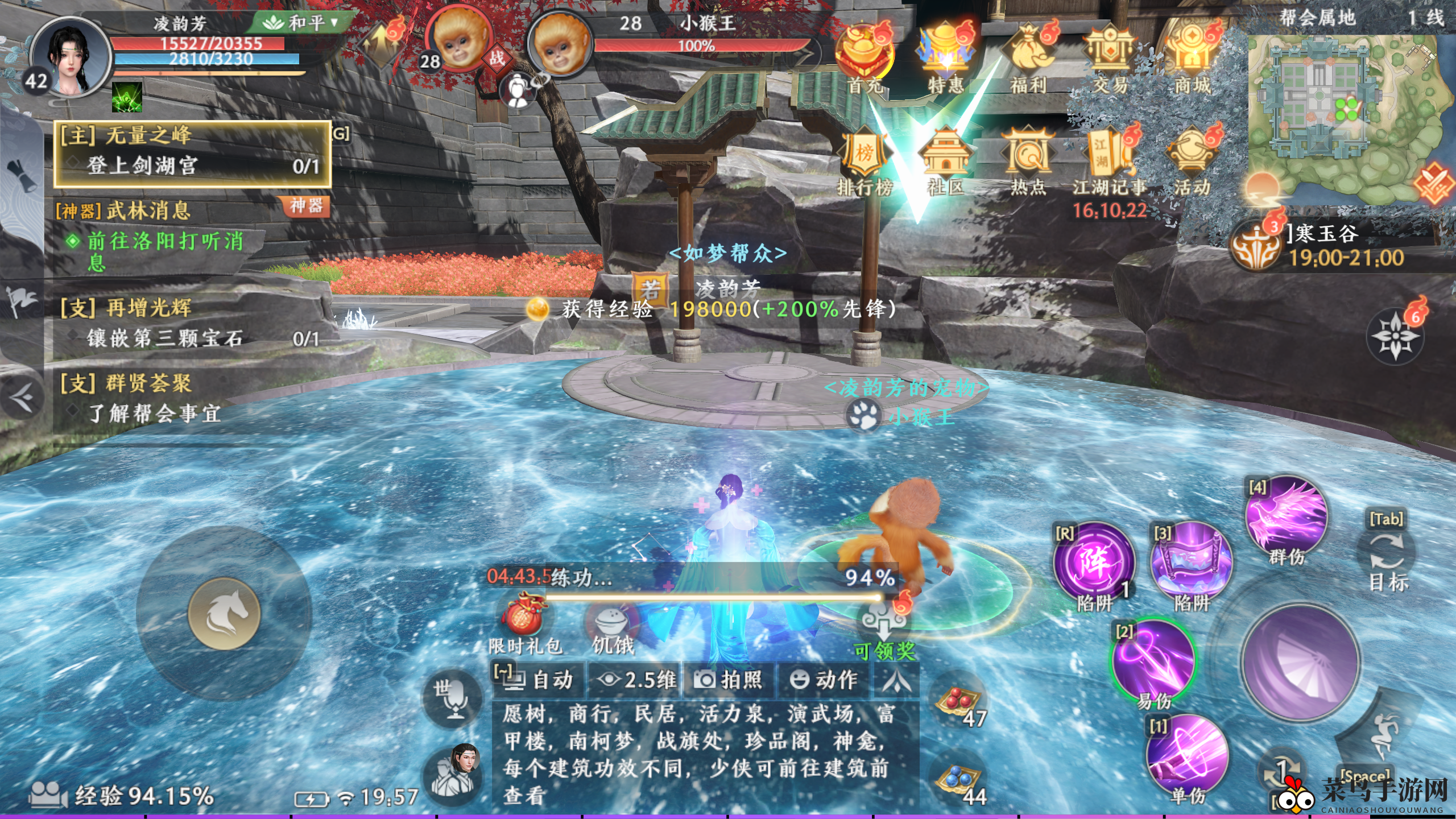 练功所得经验与寒玉谷建筑等级挂钩,最高可达3级。