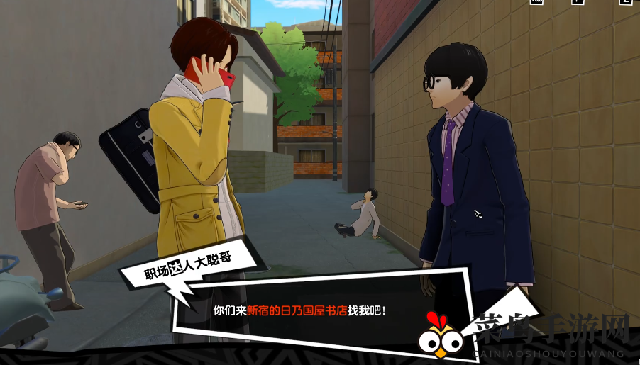 4、拨打大聪哥电话,得知目的地是新宿的日乃国屋书店,对话中选【我们出发吧】;