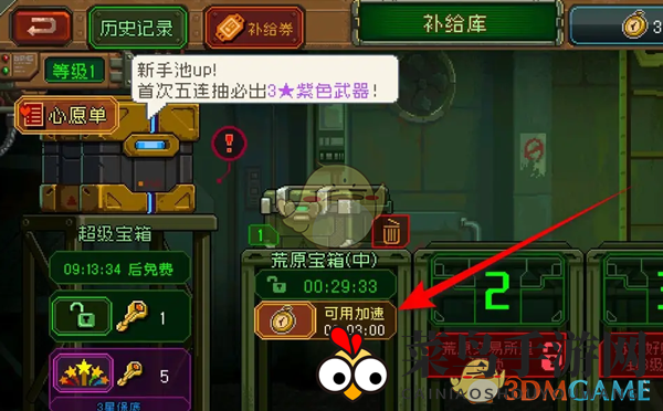 2、在补给库页面中,寻找那些能加速的补给资源宝箱,它们是加速的关键;