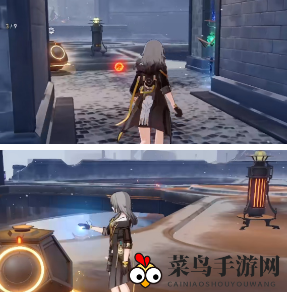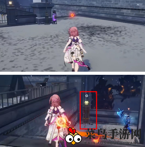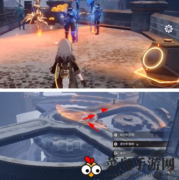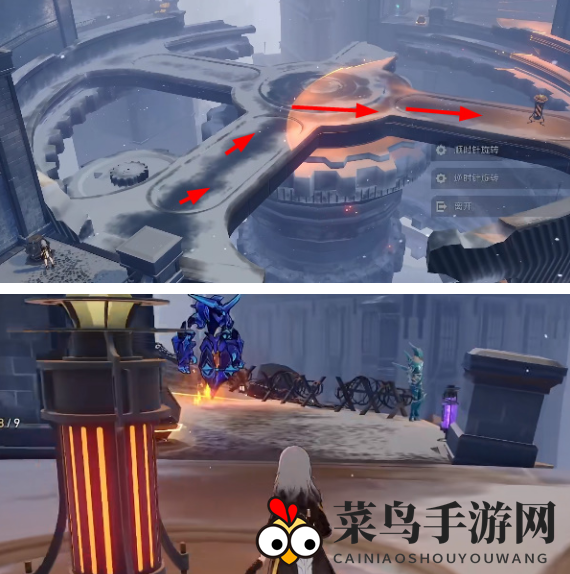 6. 移动至旋转后的灯炉位置,击退三个敌人,激活控制装置,并按箭头指示行动。