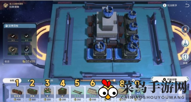 第一笔订单的操作步骤:依照图示编号,对1号货物点击3次,5号点击2次,8号点击3次,2号点击3次,7号点击2次,4号点击3次,最后对9号货物点击6次。