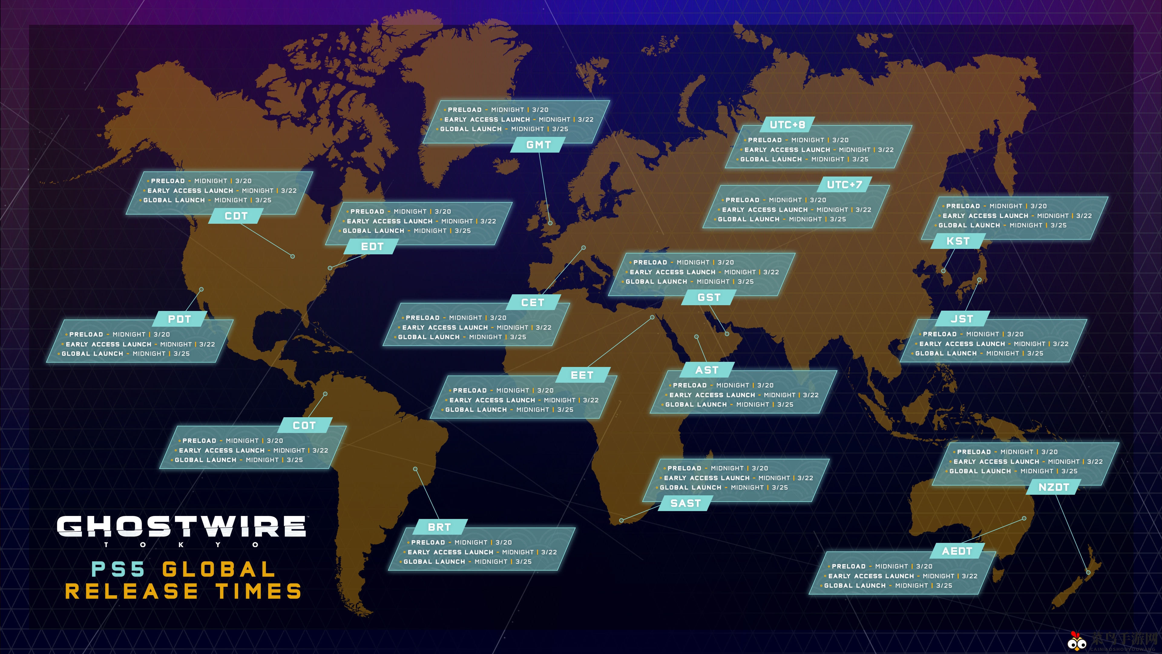 官方透露,PS5版本的《幽灵线:东京》预载将从3月20日午夜开启,豪华版玩家可于3月22日午夜先行体验,游戏正式解锁时间为3月25日午夜(均为北京时间,午夜即当天0:00)。