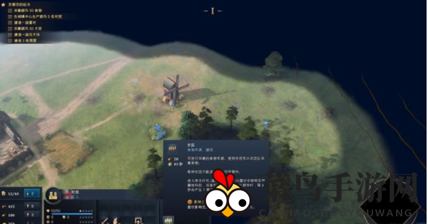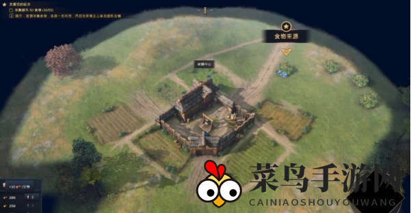 游戏中左下角的红色区域清晰标注了四种主要资源,玩家可以一目了然地观察到每个资源点的村民采集情况,鼠标悬浮更有实时资源采集速度展示。