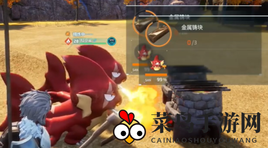 步骤2:将金属原矿投入优质熔炉,运用帕鲁的火属性能量烧制,获取精炼金属铸块。