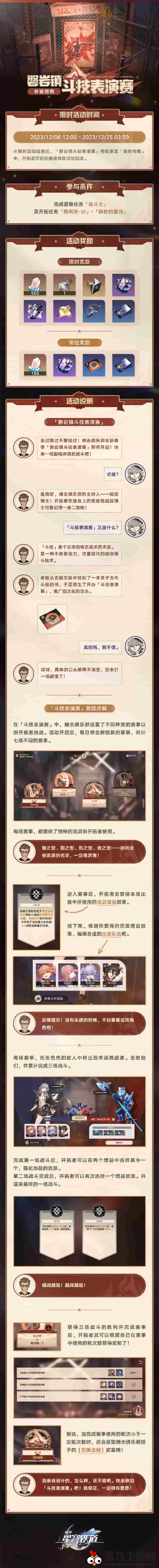 《崩坏星穹铁道》磐岩镇斗技表演赛的时间信息已揭晓,热衷于探索的你不妨查阅这篇攻略,愿它能为你带来助力。欲获取更多游戏攻略与资讯,请密切关注我们的最新动态。