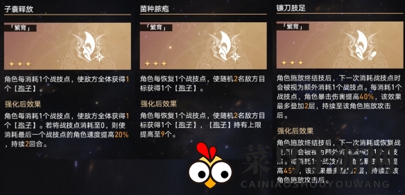 1)3星繁育祝福,全拿最佳。优先获取两个与【孢子】相关的,其次是释放终结技后被视为额外消耗战技点。