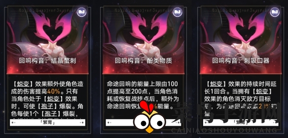 繁育-回响构音:优先获取【结晶螯刺】提升【孢子】伤害,其次【酚类物质】加快命途回响恢复,最后【刺吸口器】再次加快恢复。