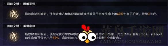 繁育-回响交错:繁育与存护、毁灭有回响交错,优先获取与存护的回响交错,为主C提供护盾,毁灭交错随缘。