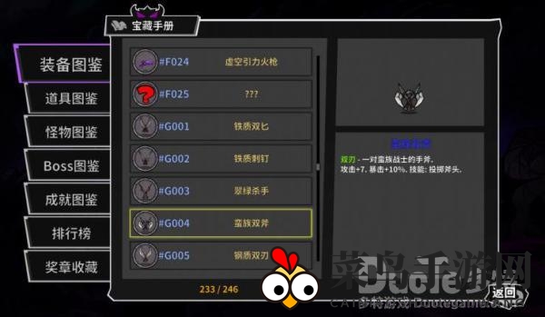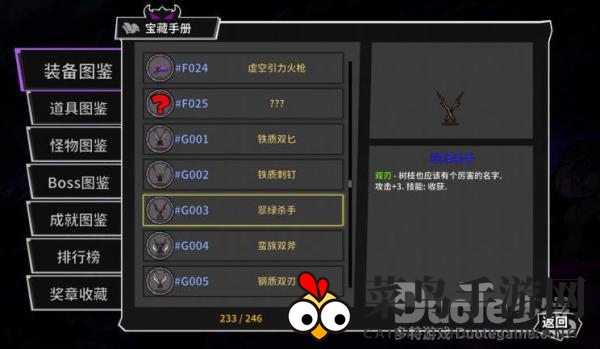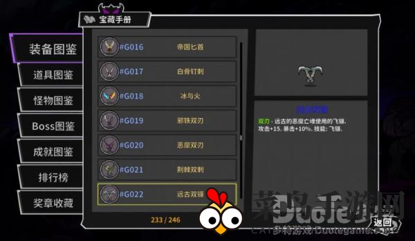 哥布林双斧——我想来想去也不知道怎么说他,说起来是随机,我捡到的十有八九都是投掷武器。基本没啥用处。贪婪双刃偷钱的装备,有闲人可以用这个武器刷刷金币。都不是特别推荐的武器。