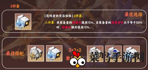 分析:筑城者的贝洛伯格2件套作为核心装备,能够增强防御力,提高命中效果,并提升嘲讽概率。