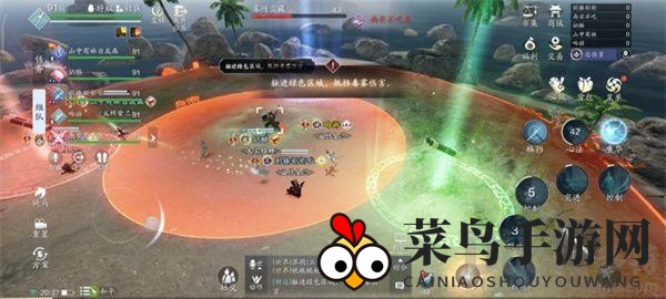 当然,这招也不难破解。扇形AOE可以直接翻滚躲避。而毒雾则需要在“授命·化毒”区域(绿圈)中才能免受伤害。