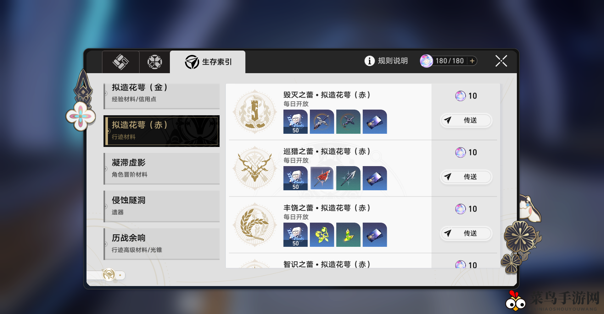 拟造花萼金:获取角色经验、光锥经验、信用点等核心材料的关键途径。