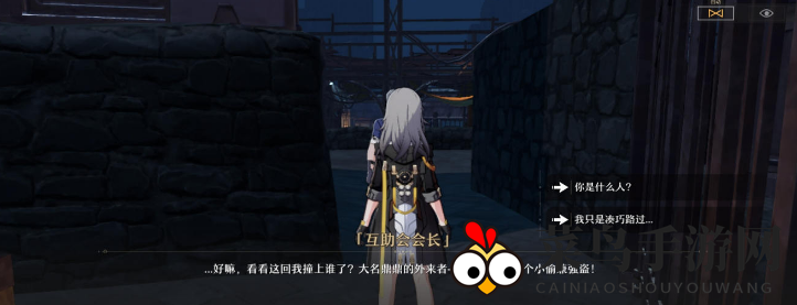 5、在铆钉镇击败流浪者,继续前进,找到互助会会长,与之对话并挑战