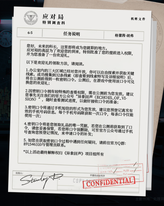 官网中藏有32条线索,输入手机号码后,你将有机会在公测期间获得一份由科长精心准备的惊喜礼物。