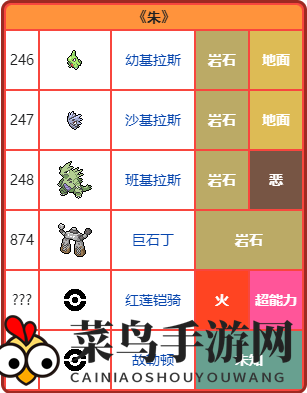 朱版专属宝可梦阵容有:班吉拉斯家族、巨岩丁、红莲铠骑、故勒顿,更有神秘古代种待你揭晓。