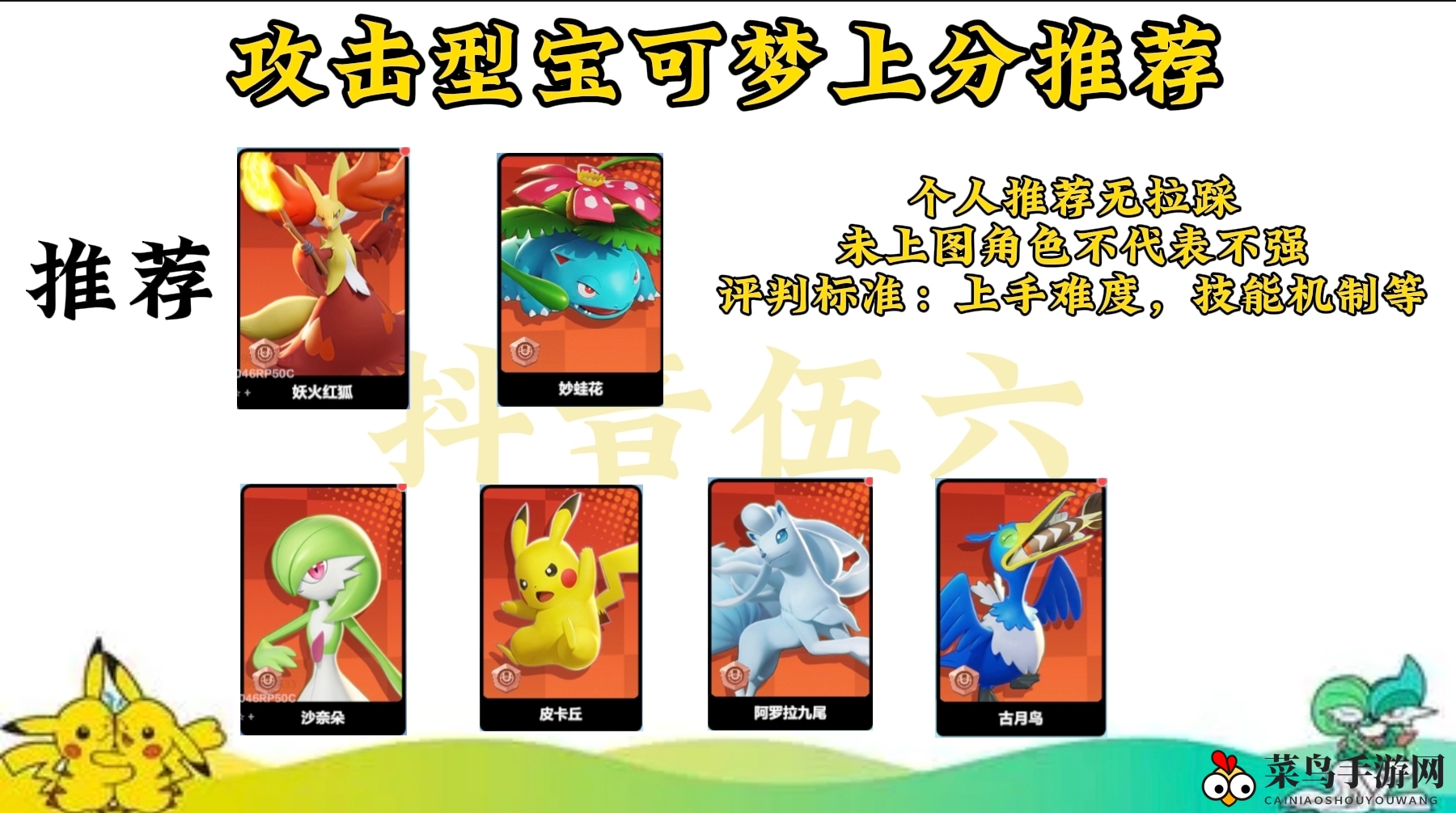 攻击型宝可梦上分推荐,妖火红狐和妙蛙花操作简单,兼具控制和高速优势。
