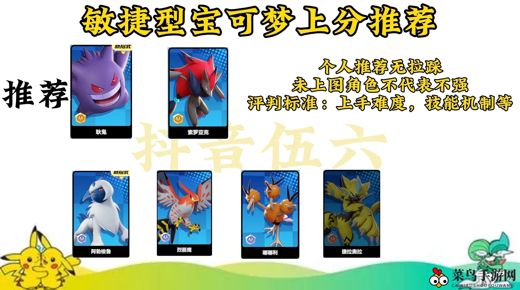 敏捷型宝可梦推荐耿鬼和索罗亚克,它们以出色的机动性著称。