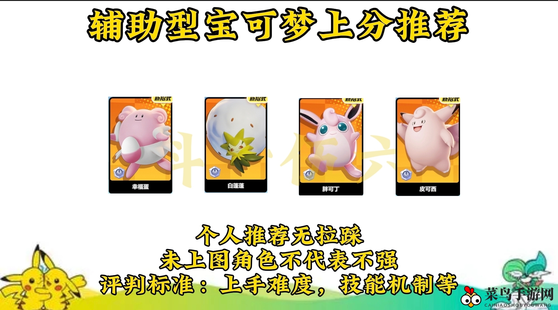辅助型宝可梦推荐以纯辅助、加血为主,如皮可西。