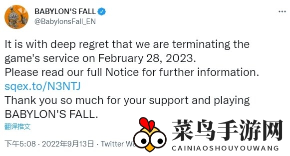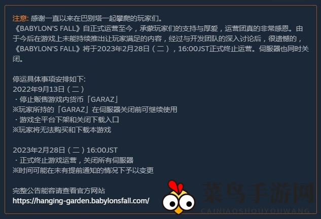 2023年2月28日,游戏运营正式结束,所有服务器将关闭。