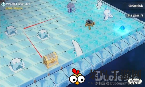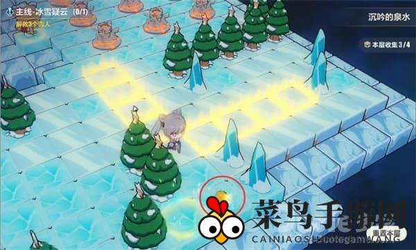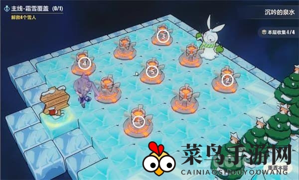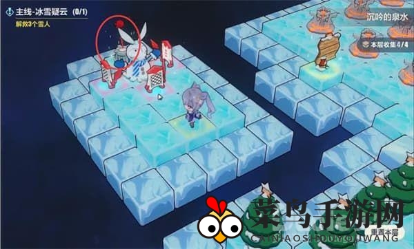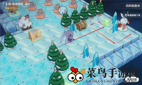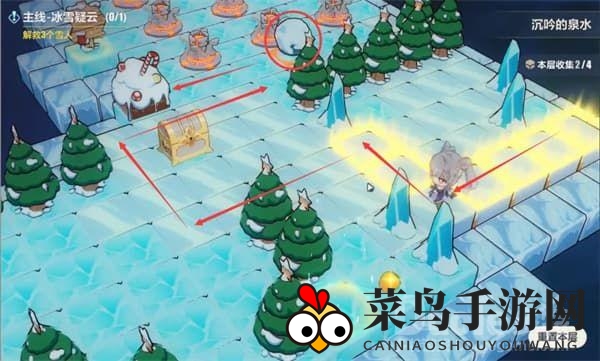 按照红色箭头指示,一次性完成宝箱和雪人的互动。