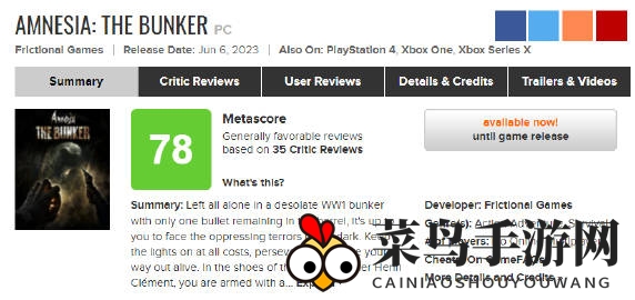 M站媒体评分揭晓,当前均分为78分,汇集35家媒体的声音。IGN评价指出,《失忆症地堡》虽然与前作相比未带来颠覆性创新,但在广阔的世界观中,其小章节的恐怖体验稳定且令人兴奋,持续为玩家提供刺激感。对于系列粉丝而言,这是一款不容错过的杰作。