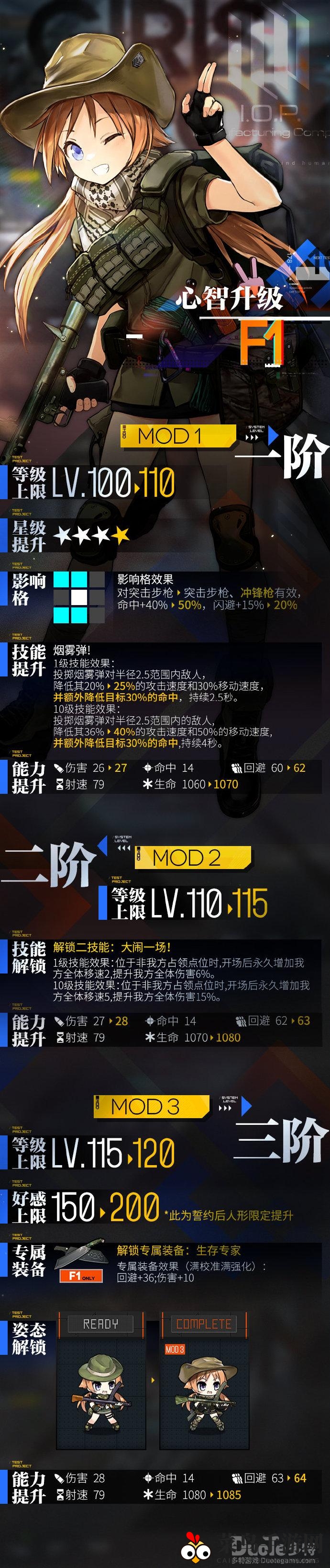 少女前线F1心智升级解析完毕,愿这份攻略助您在游戏中所向披靡。