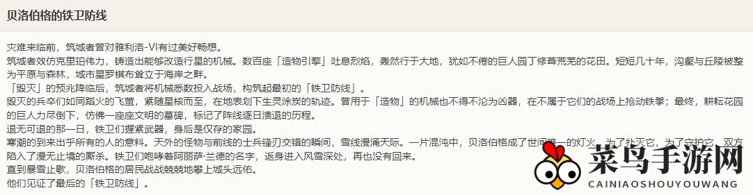 「毁灭」的预兆降临后,筑城者将机械全部投入战场,构筑起最初的「铁卫防线」。