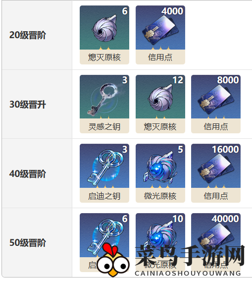 升级所需材料