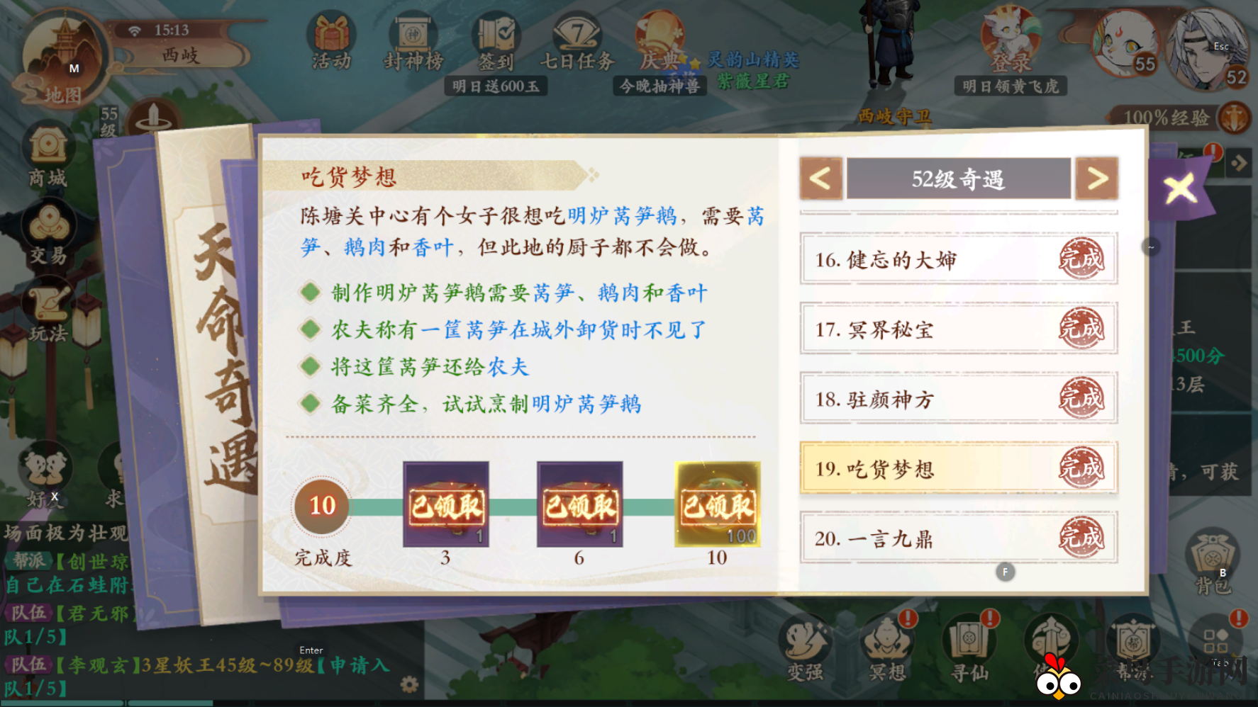 《封神幻想世界》玩家们期待已久的特别任务19——“美食之旅”攻略大揭秘!想知道如何在这次美食奇遇中成为佼佼者吗?跟随我们的指引,一起踏上陈塘关的美食寻宝之旅吧!