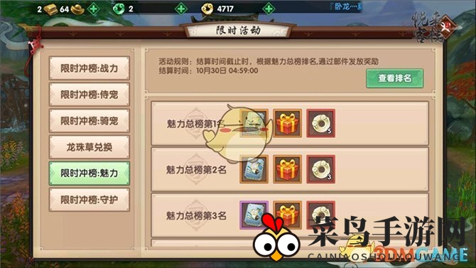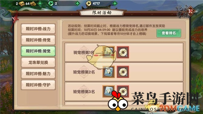 本次活动共设战力、侍宠、骑宠、魅力、守护五个榜单。战力榜以战斗力为标准,玩家需充分利用坐骑和侍宠装备,将战斗力推至顶峰。侍宠榜和骑宠榜同理,且战力榜前几名玩家可能同时位列骑宠侍宠榜前几名。因宠物技能各异,选择属性战力更高的玩家将在竞争中更具优势。