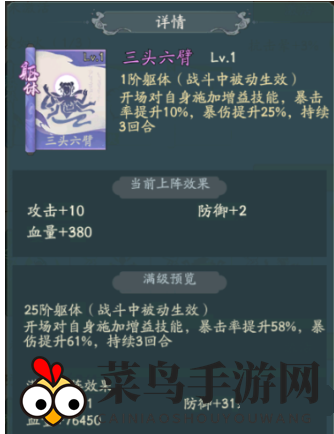 2、法天象地和三头六臂可显著增强暴击几率和暴击伤害,灭心魔种同样能够提升暴击伤害,而解尸法提供的复活能力极大地提升了游戏的容错率。玩家们可依据灵兽特性,灵活搭配金鸡啼鸣等道法,形成多样化战斗策略。