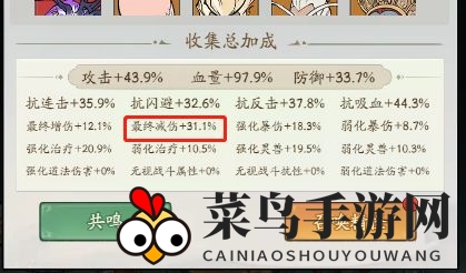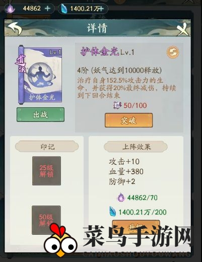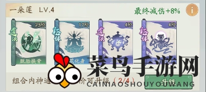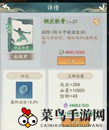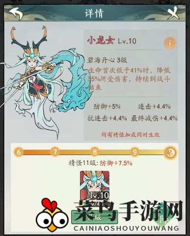 可以看到,这两个精怪都拥有大量的减伤。目前我的等级较低,两个精怪叠加的减伤能达到53%,接下来我们来看神通。