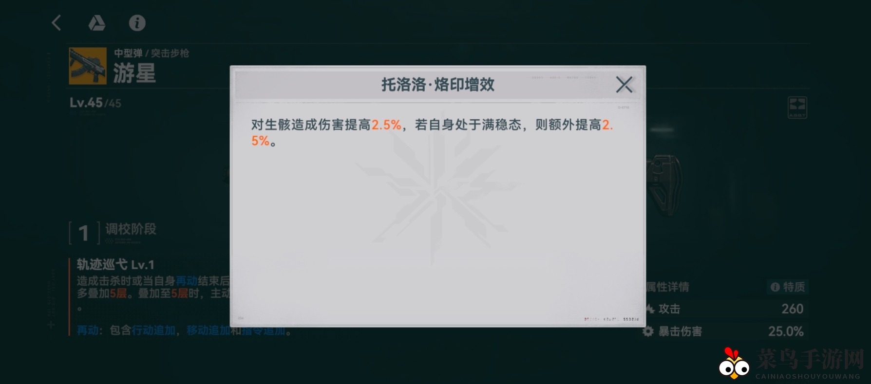 托洛洛·烙印增效:对生骸伤害提升2.5%。若自身处于满稳态,额外提升2.5%。