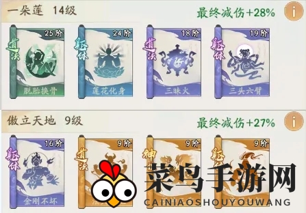 ·神通方面,选择适合自己的流派神通凑齐2阶后,重点提升减伤图鉴神通,以获取更多减伤。守护印记则优先提升。