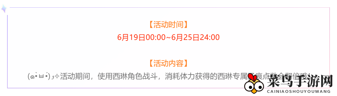 关于本次《崩坏2》西琳角色加成活动的全部详情,小编已为您打包好,想了解更多游戏新鲜事,就关注我们的游戏下载平台吧!