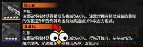 注意破坏掩体,精准减伤60%,对移动减益目标伤害提升,攻击前为自身施加10%攻击削减。