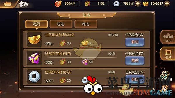 官职的提升不仅能增强属性,还能让玩家的名字在游戏界面中熠熠生辉,官职包括校尉、御史、都尉、将军。所以,加油提升你的官职吧!