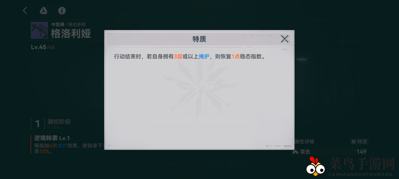 行动结束时,若格洛利娅拥有3层或以上掩护,则恢复1点稳态指数。