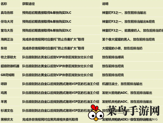 如果没有神室町F3,可以在完成相关委托后获得海腾和东,同样搭配两个混子角色,刷至10级左右。