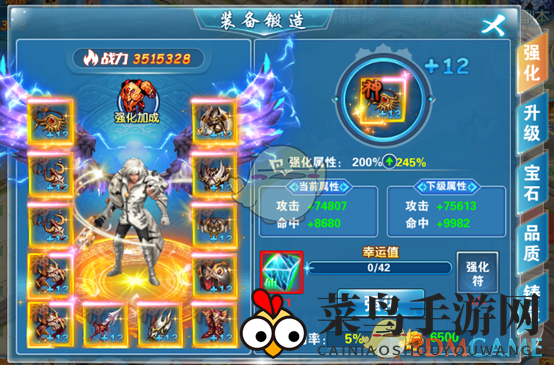 一、强化:运用强化石为装备注入能量,强化石可在商城轻松购买。强化虽有失败风险,但强化符的辅助下,成功指日可待。强化至一定程度,还能解锁额外属性。