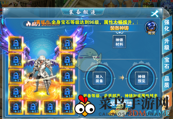 1、神铸:消耗神铸石或神铸铁提升。