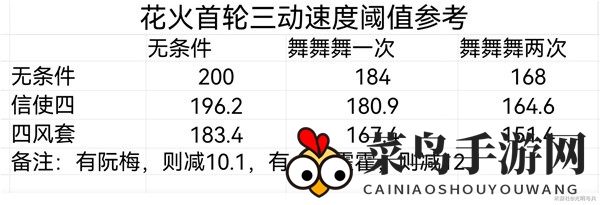 理论上需要花火速度尽量接近主c,但主c要首轮三动花火只要大于133.4即可,是否要继续堆高酌情取舍。