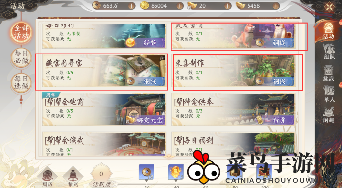 铜钱在游戏中用途广泛,无论是提升功力还是强化装备,都离不开它。获取铜钱的方法多样,如参与游戏活动、挖掘藏宝图、采集资源、繁育灵兽等,应有尽有。