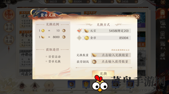 除此之外,玩家还可以通过消耗元宝、绑定元宝或金币来直接兑换铜钱,实现快速获取。