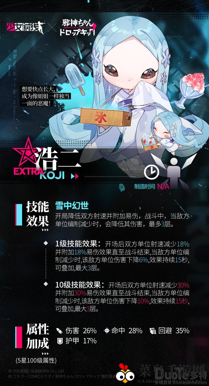 少女前线联动版妖精浩二的属性解析完毕,玩家们可在活动期间利用游戏素材兑换这位妖精。更多精彩内容,敬请锁定多特手游!