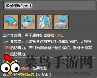 繁星璀璨的天才套装,是一款专为量子属性输出角色设计的通用套装,赋予角色无视防御的能力,是各类输出角色的不二之选。
