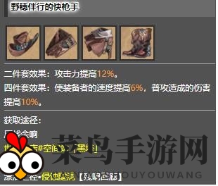 四件套效果:装备者速度提升6%,普攻伤害提升10%。