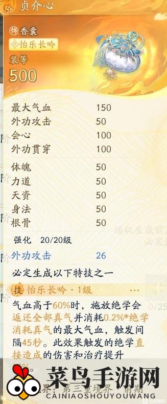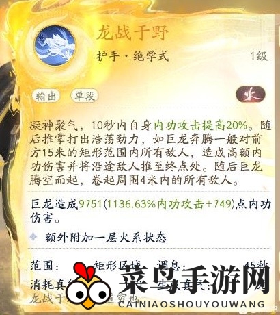 提升真气上限,确保降龙绝学与副武器绝学同步施展。