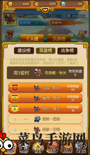 除了个人排行榜,还有以氏族为单位的综合榜单,包括建设榜、英雄榜、战争榜,这些榜单以氏族成员整体实力为基准进行排名。这正是氏族展示实力、吸引新成员的关键所在。