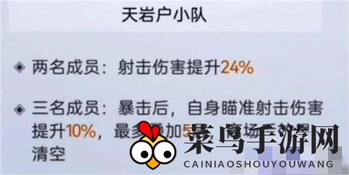 天岩户小队则擅长射击伤害,其射击伤害提升高达74%,这正是天岩户小队的优势,也是主输出角色不可或缺的助力。